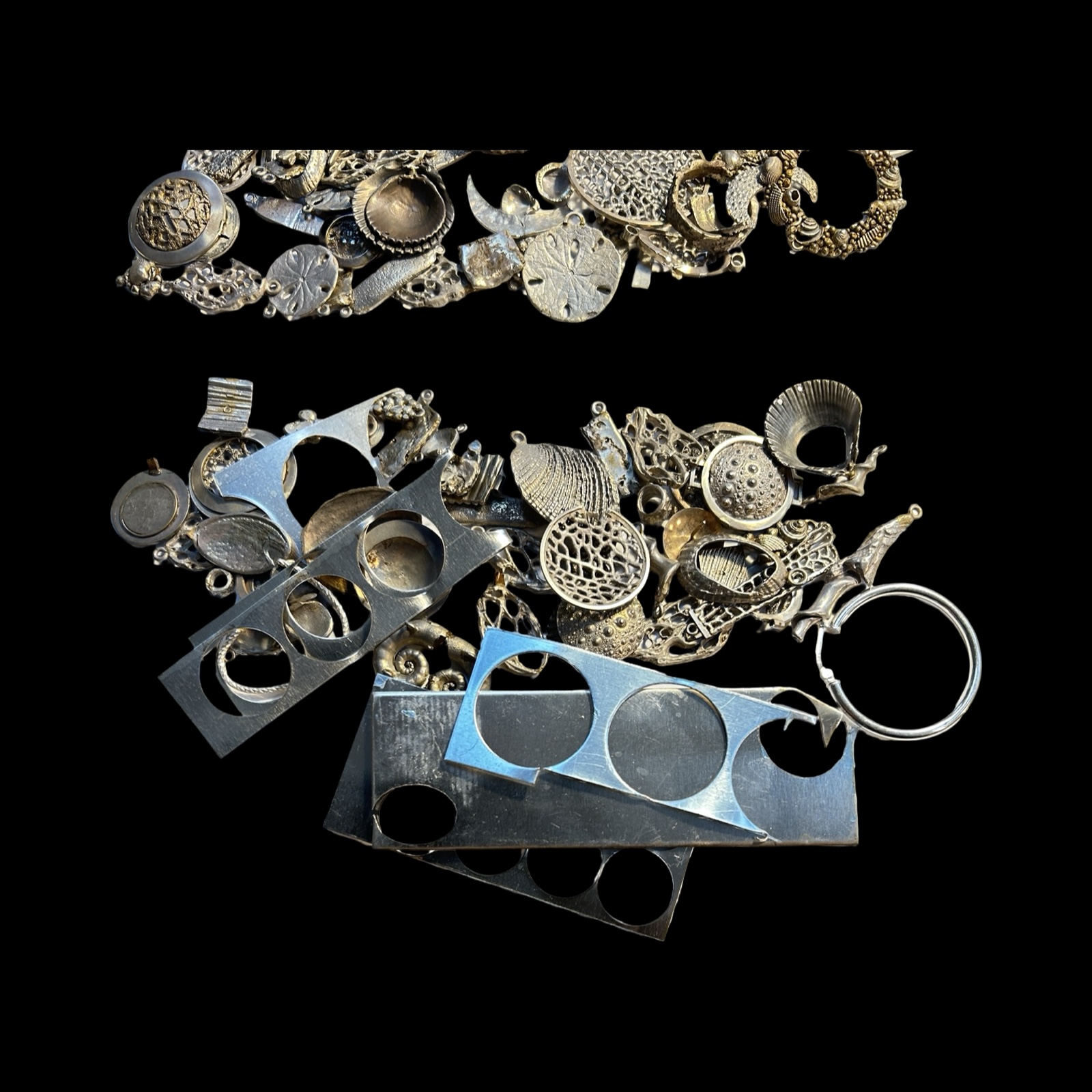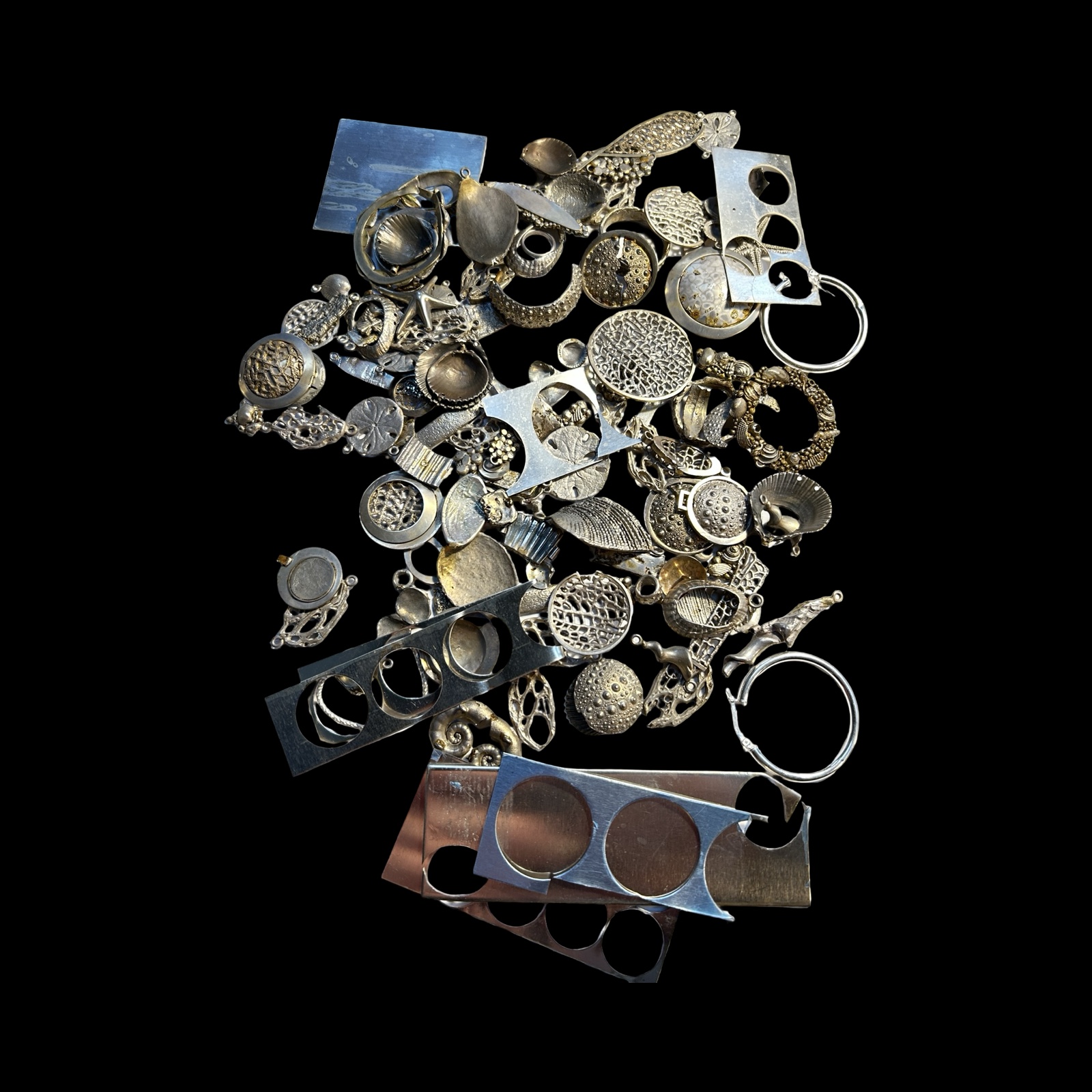 MIXED LOT OF WHITE METAL UNFINISHED SEASHORE OFFCUTS, WORKINGS AND FINDINGS.