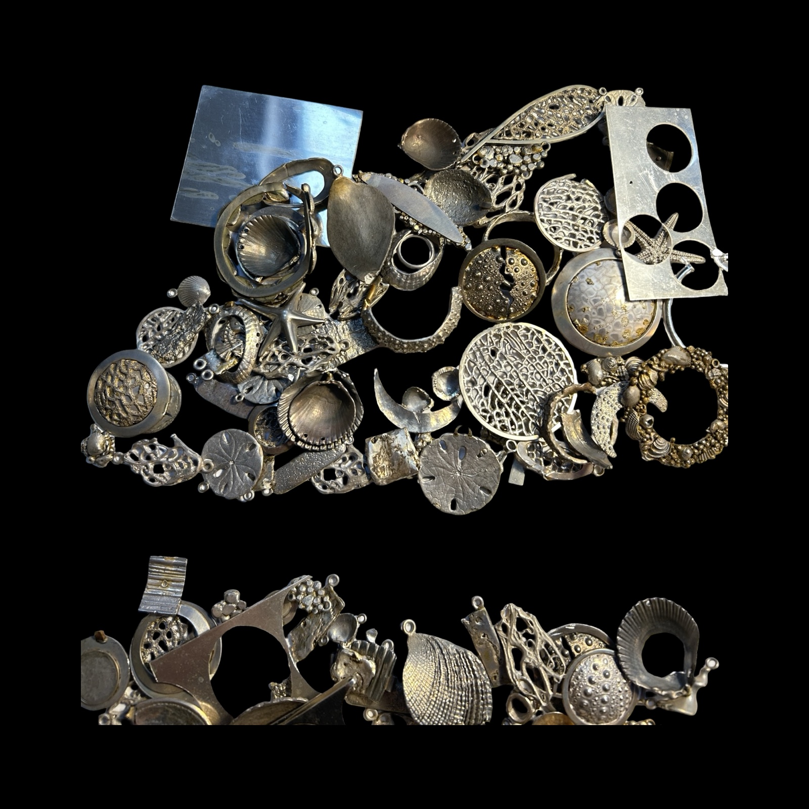 Provenance: From the workshop of the Late Rachael Whitteridge. Rachael was a silversmith lived in the UK and who travelled the Caribbean being inspired by seashells and the seashore. Her range of individually crafted silver shell necklaces, bracelets, earrings, other items and bead jewellery were cleverly worked to a high quality. She set up a small company (Rachael Whitteridge Designs) on the tiny Caribbean island of Nevis.