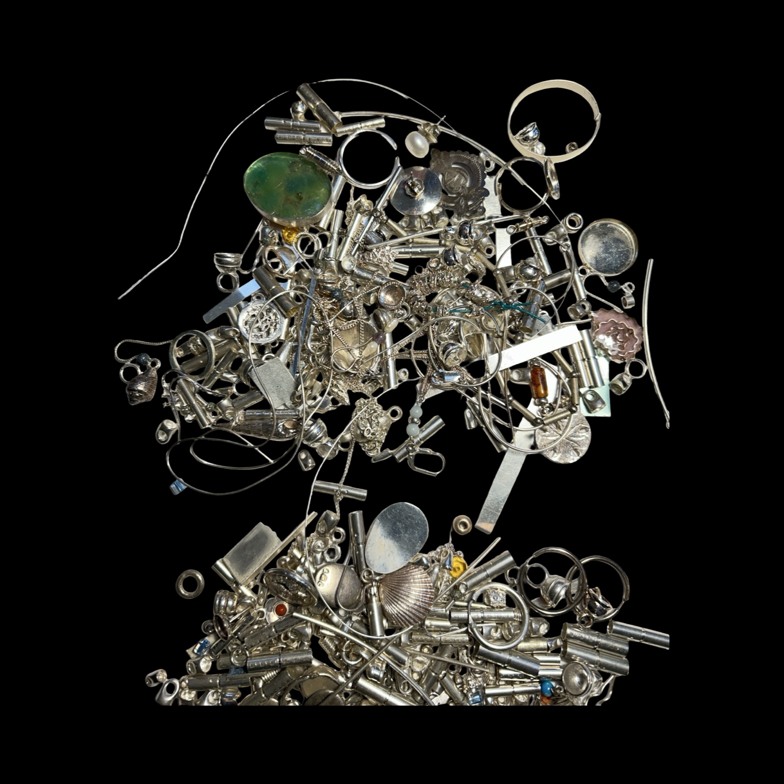 Provenance: From the workshop of the Late Rachael Whitteridge. Rachael was a silversmith lived in the UK and who travelled the Caribbean being inspired by seashells and the seashore. Her range of individually crafted silver shell necklaces, bracelets, earrings, other items and bead jewellery were cleverly worked to a high quality. She set up a small company (Rachael Whitteridge Designs) on the tiny Caribbean island of Nevis.