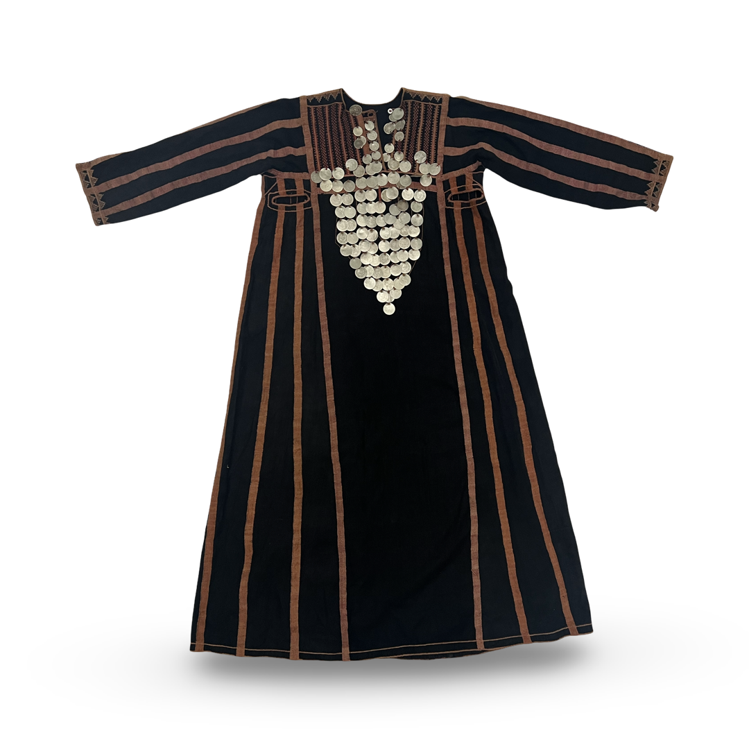 A TRADITIONAL PALESTINIAN OR SYRIAN THOBE/DRESS WITH OTTOMAN COIN DECORATION, EARLY 20TH CENTURY
