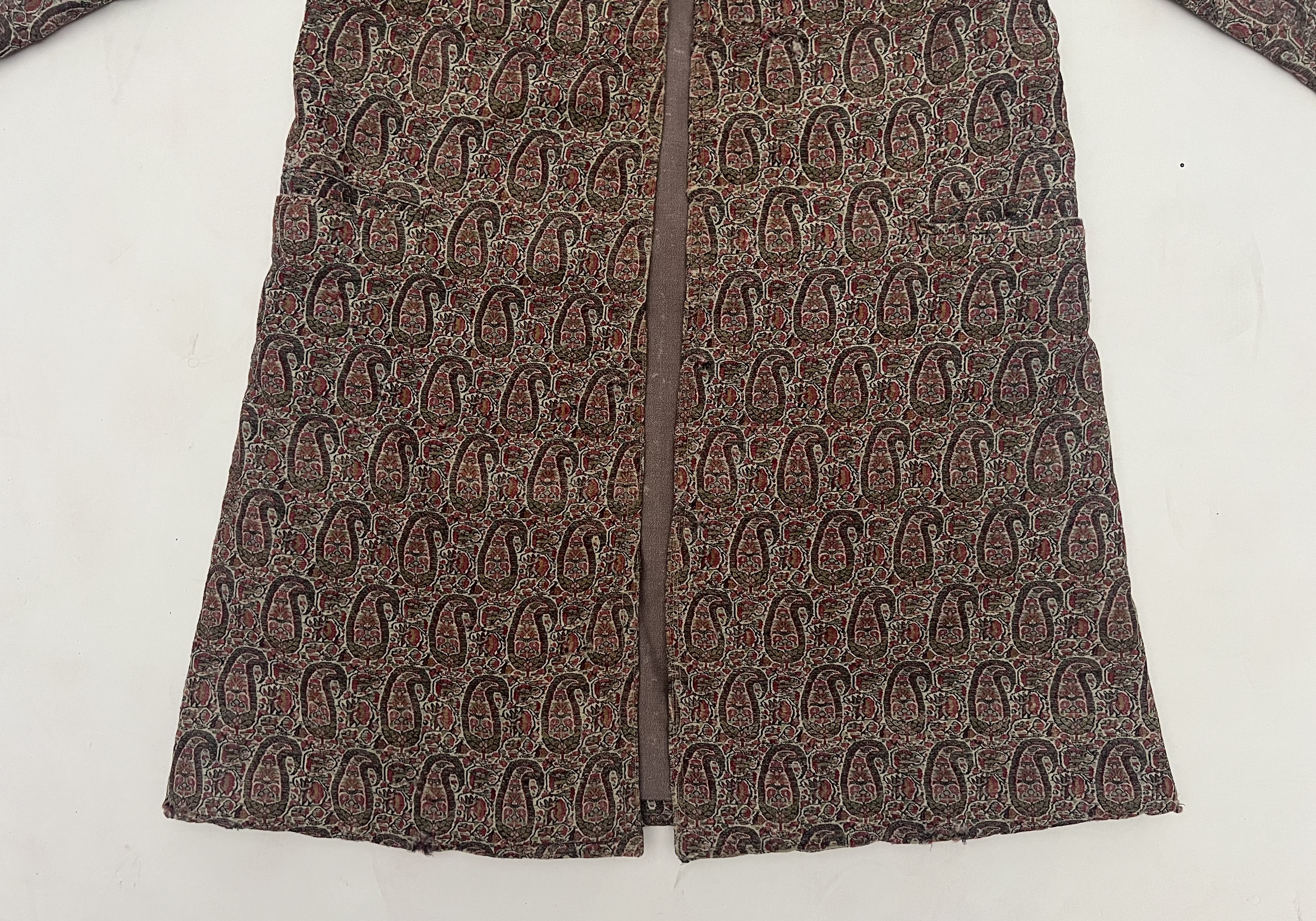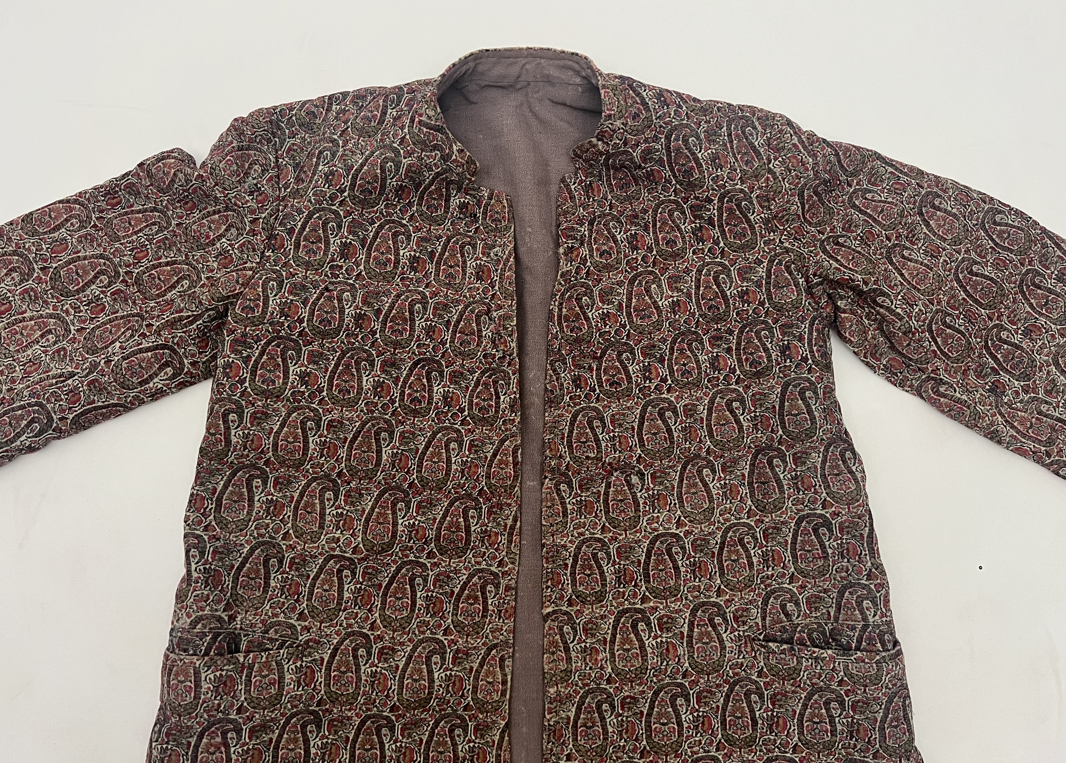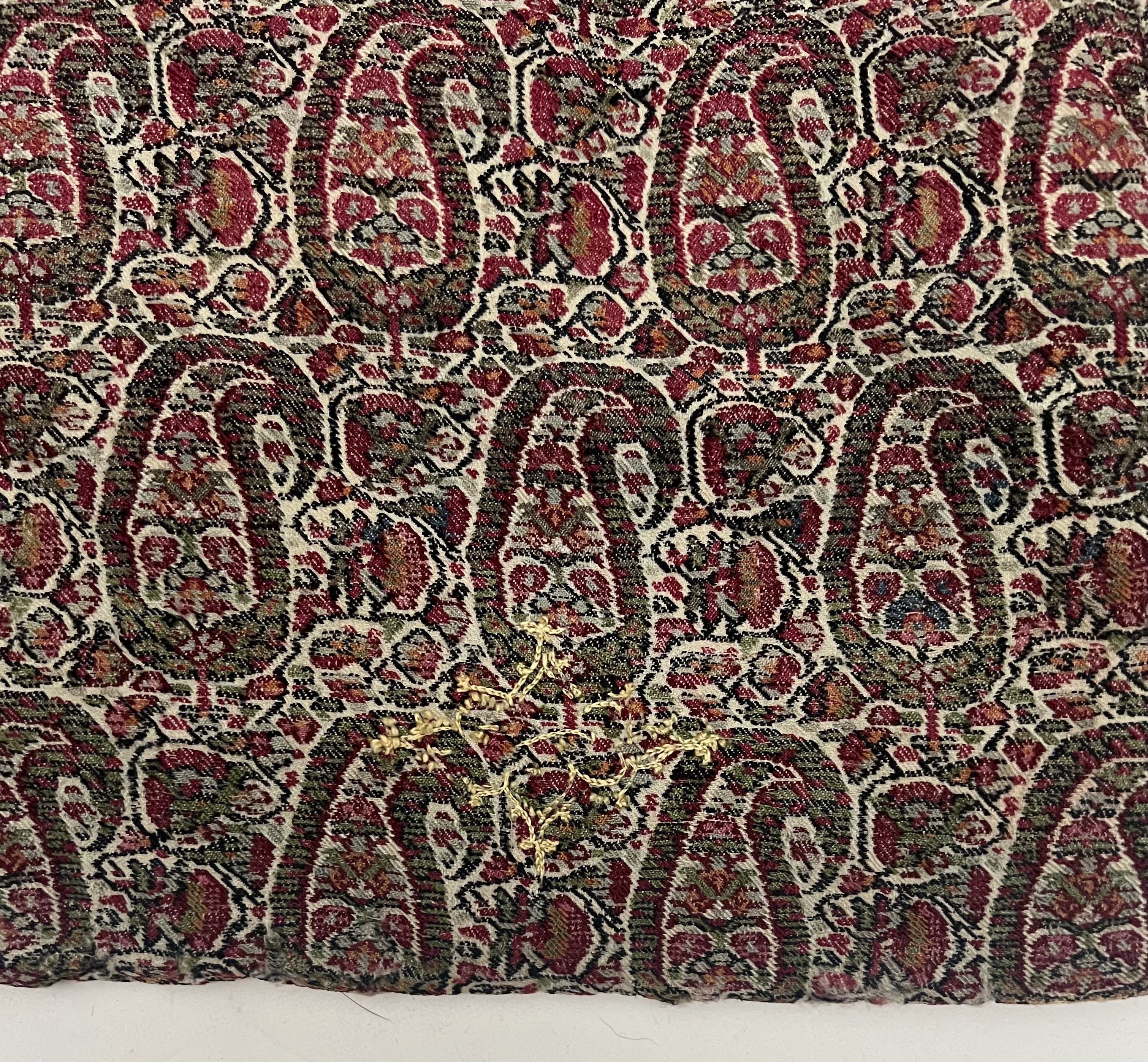 A ROYAL QAJAR WOVEN PAISLEY OPEN-FRONT JACKET/COAT, IRAN PROBABLY KERMAN, EARLY 20TH CENTURY